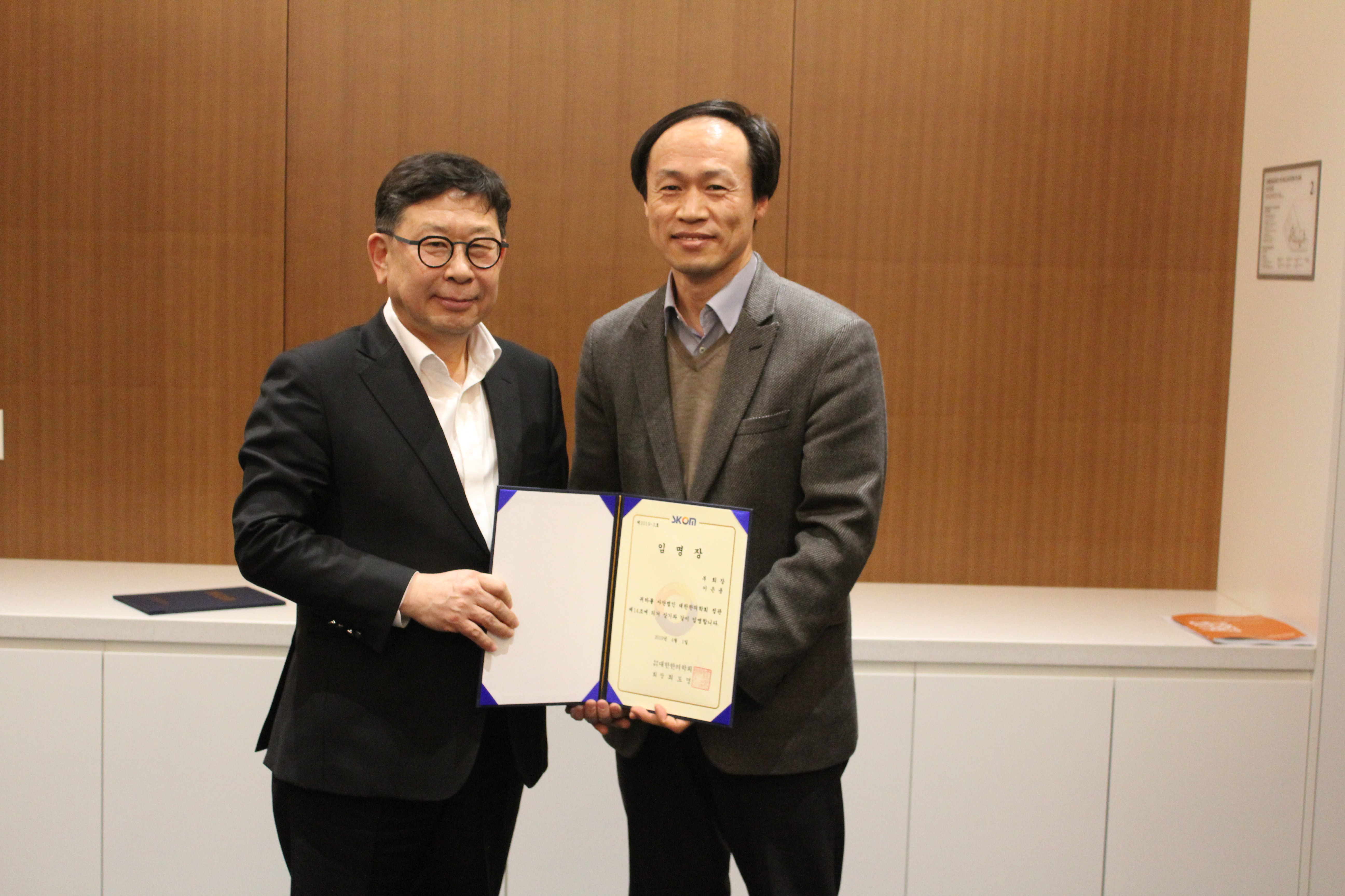 송호섭 전 부회장님의 공로패 증정식과, 새로 부임하신 이은용 부회장님, 이승훈 홍보이사님의 임명장 증정식이 있었습니다.