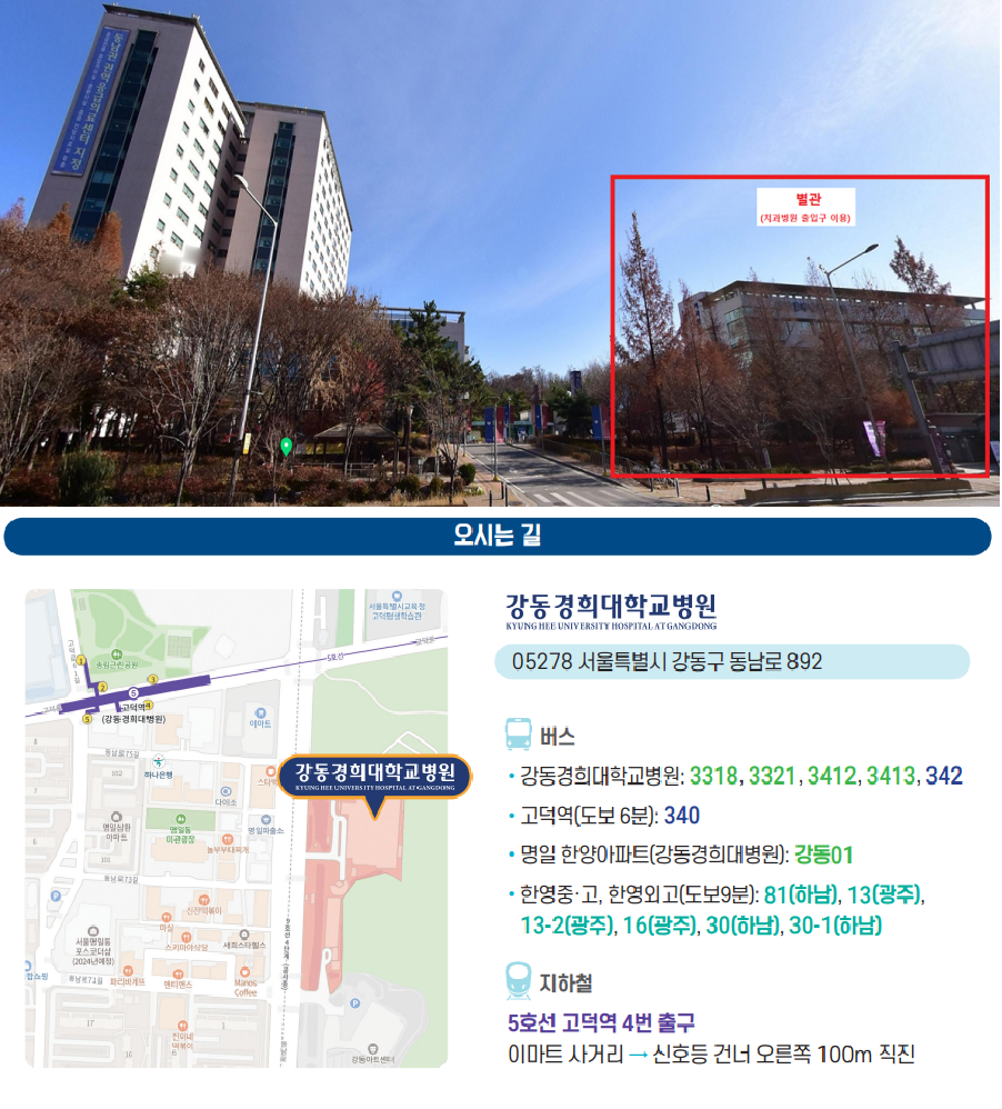 - 장소 : 서울 강동구 동남로 892 강동경희대병원 별관 4층 차후영홀