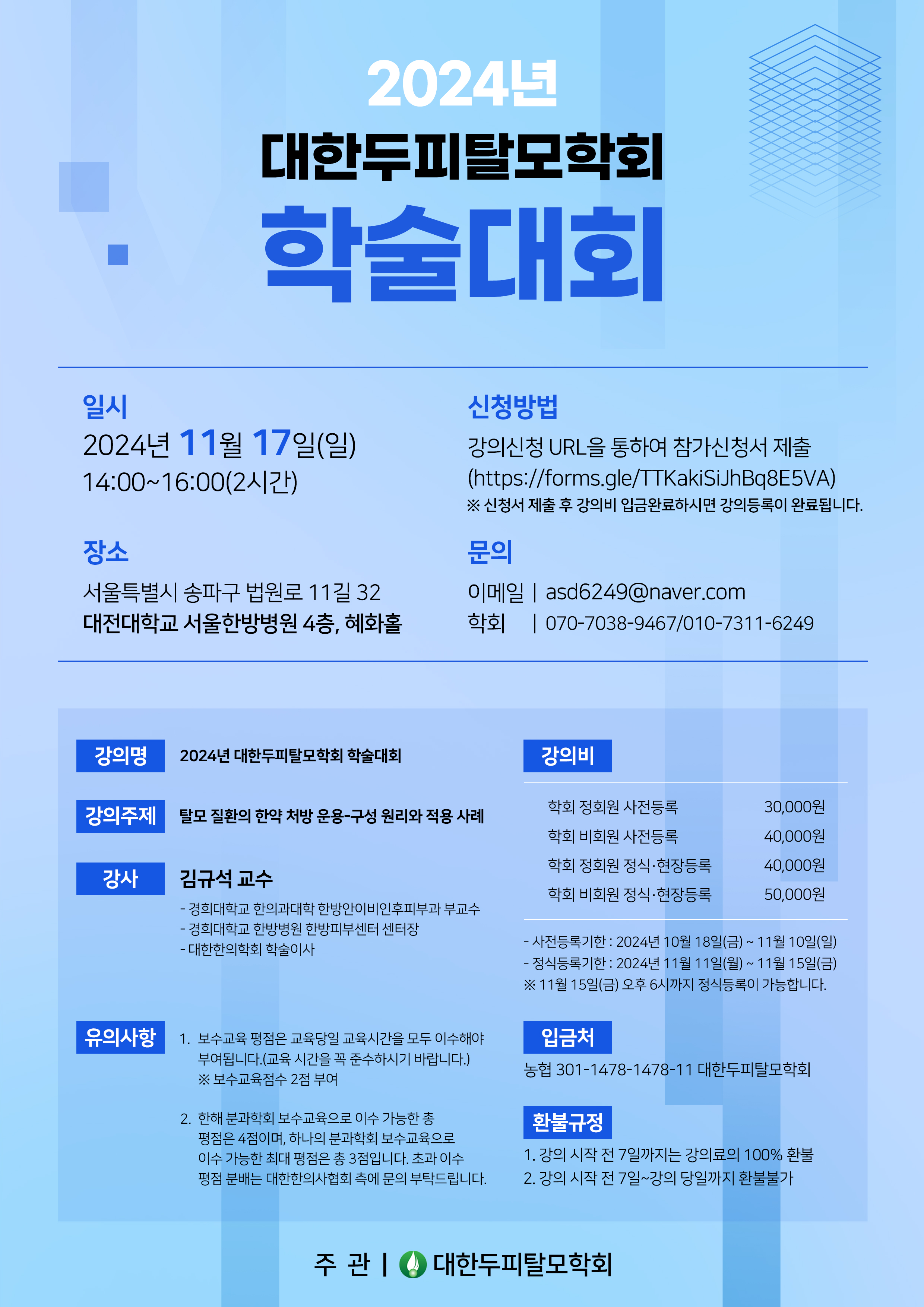 [ 대한두피탈모학회 2024년 학술대회(보수교육) ]